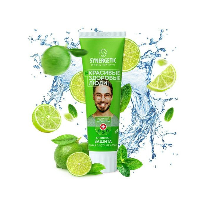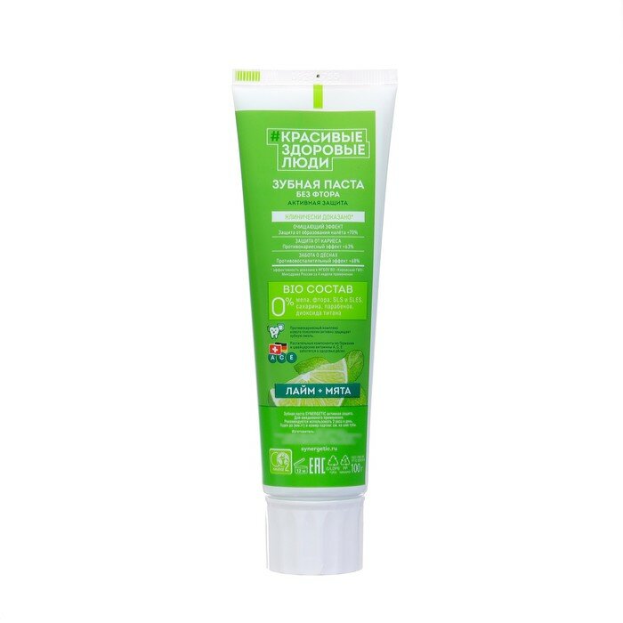 Зубная паста Synergetic Красивые здоровые люди Активная защита Лайм + Мята, 100 г