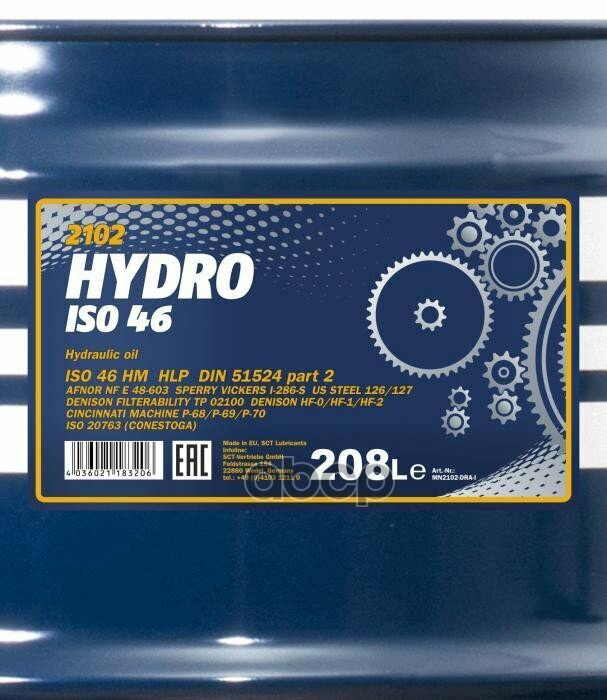 Масло Гидравлическое Hydro Iso 46 Мин. 60Л (Iso Vg 46; Din 51524 Part 2, Hlp) MANNOL арт. MN2102-60