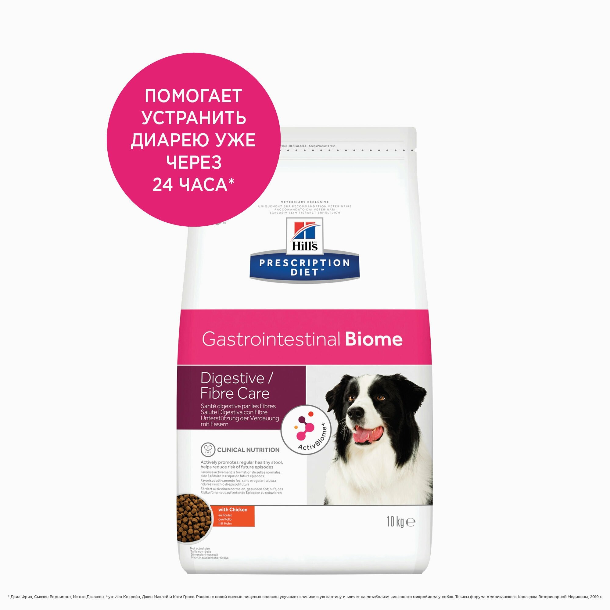 Сухой корм для собак Hill's Prescription Diet Gastrointestinal Biome Digestive/Fiber Care, при болезнях ЖКТ, курица 10 кг