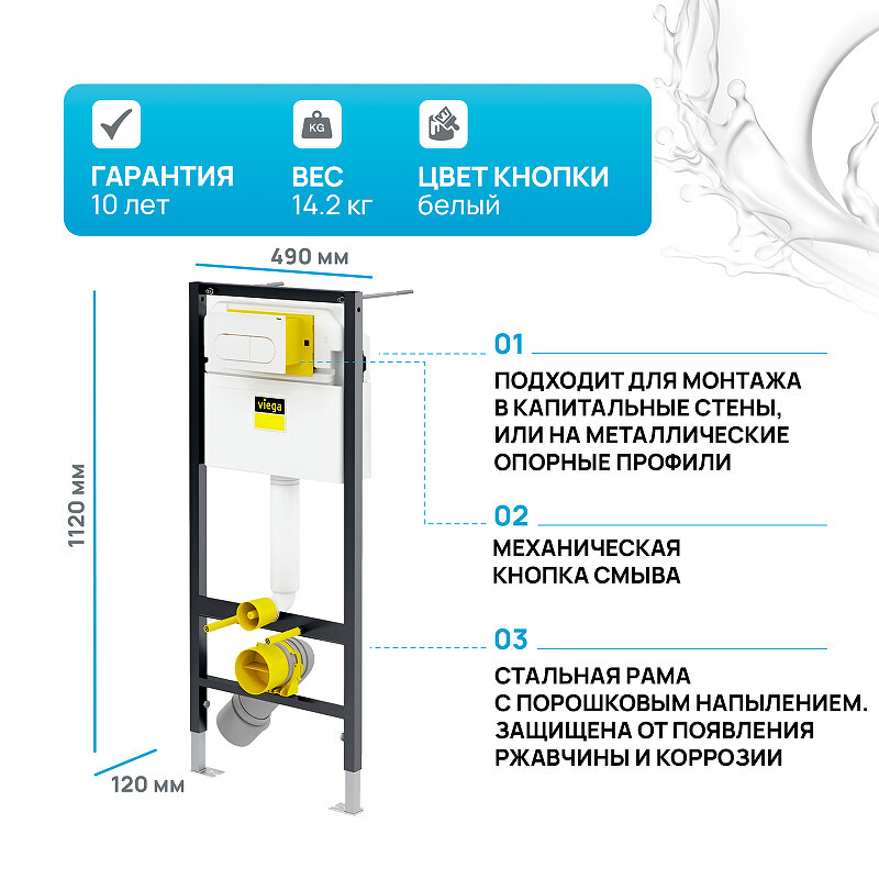 Система инсталляции для унитазов Viega Prevista 8524.11 с белой кнопкой смыва 792831