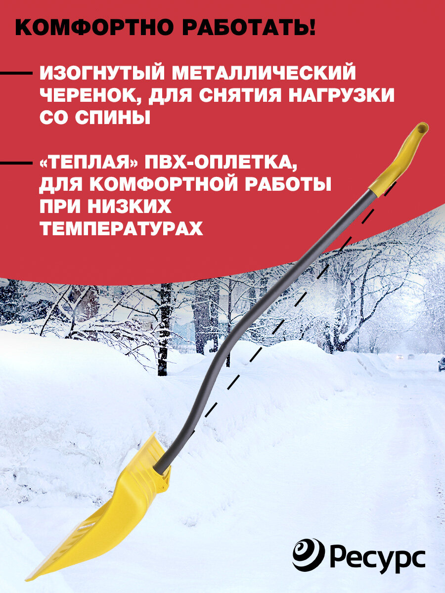 Очень удобная форма ручки с изгибом и правильно подобранная длина, позволяют убирать снег и 30 и более минут и не чувствую, как говорится "спиной". Однозначно рекомендую к покупке. |