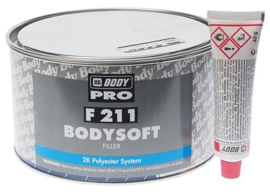 Шпатлевка универсальная для кузова автомобиля HB BODY 211 BODYSOFT 1,8 кг / 2К полиэфирная мультизернистая шпатлевка с отвердителем в комплекте