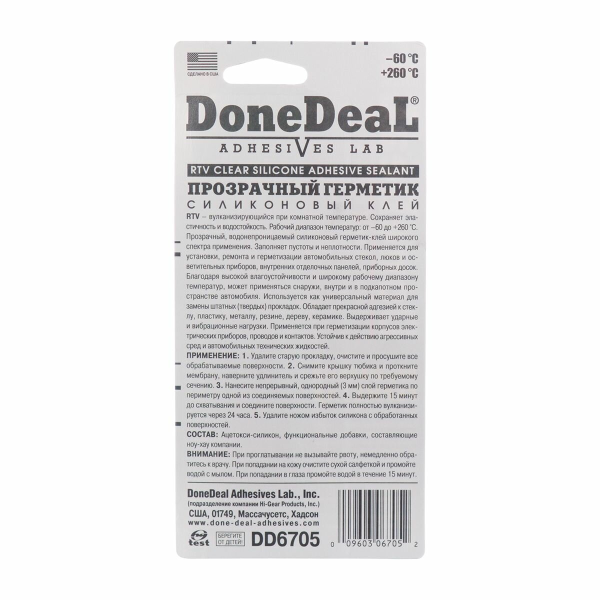 Силиконовый клей-герметик для ремонта автомобиля Done Deal DD6703, 0.043 кг прозрачный