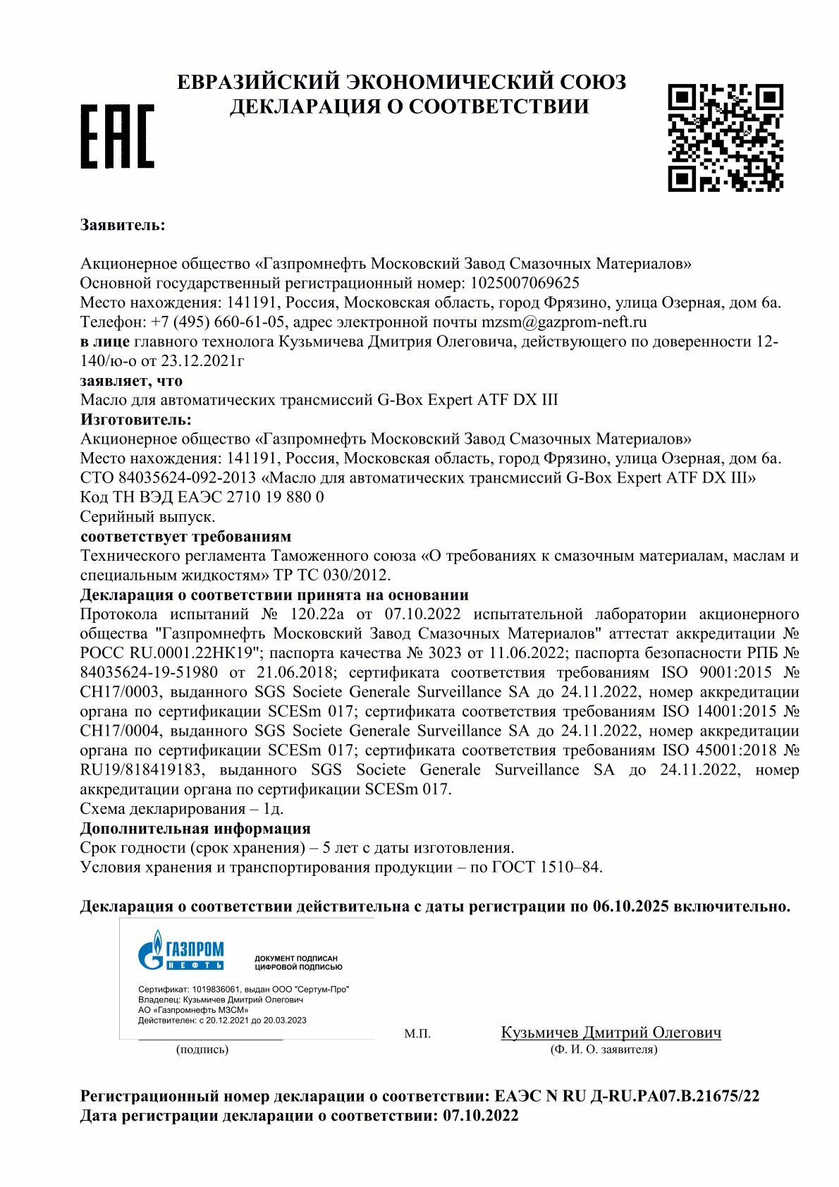 | Производитель | G-Energy |