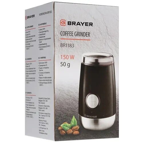 1183BR Кофемолка BRAYER BR1183, Емкость 50 г.,Мощн. 150 Вт, Пластиковый корпус, Чаша из нерж.стали