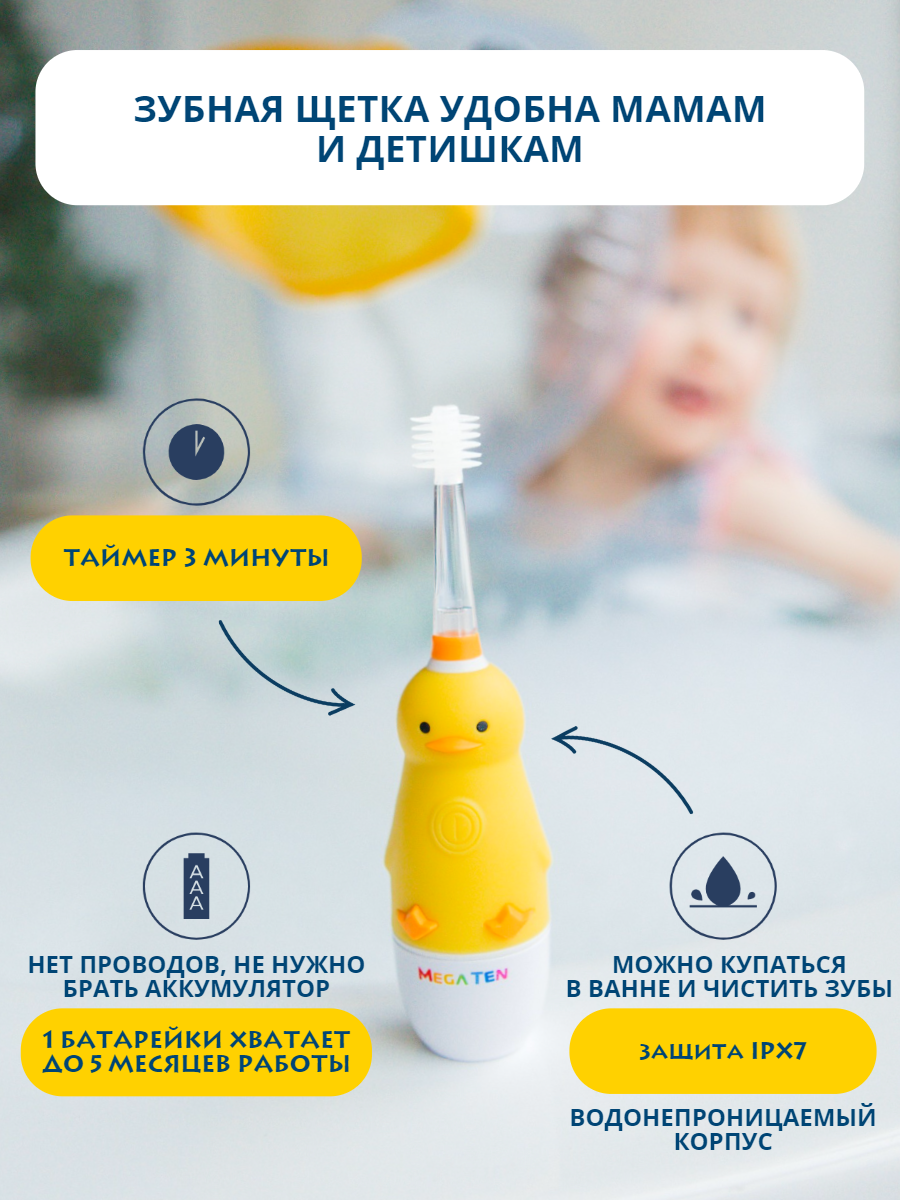 СохранитьЭлектрическая зубная щетка MEGA TEN Kids Sonic Утенок интересное: