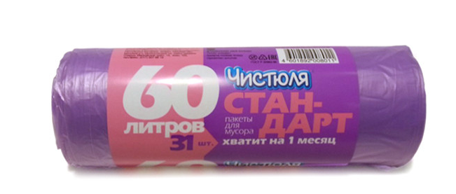 Пакеты для мусора Чистюля в рулоне "Стандарт", 60 л, 31 штука интересное: