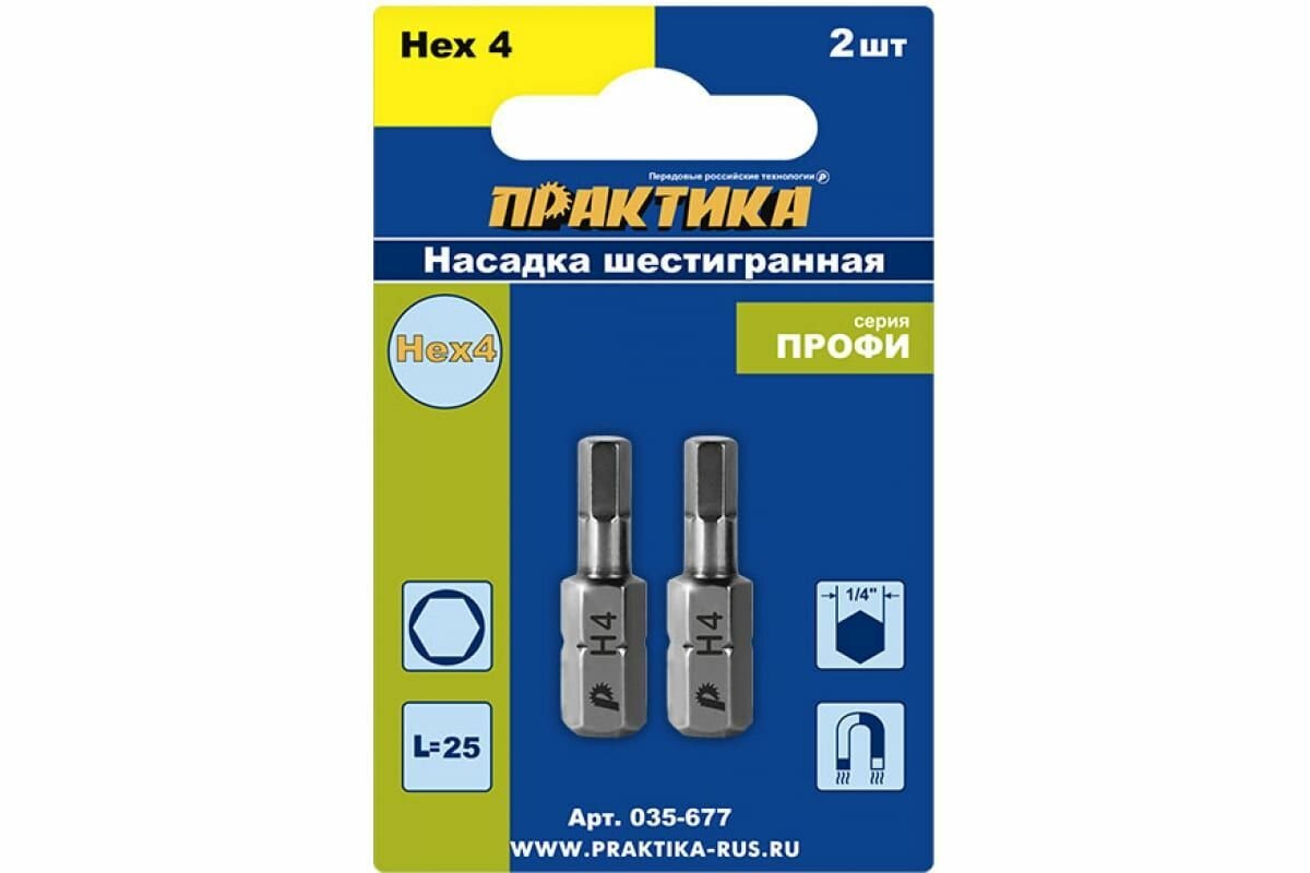 Купить Бита ПРАКТИКА HEX 4х25мм 2шт блистер (035-677) Профи, упак