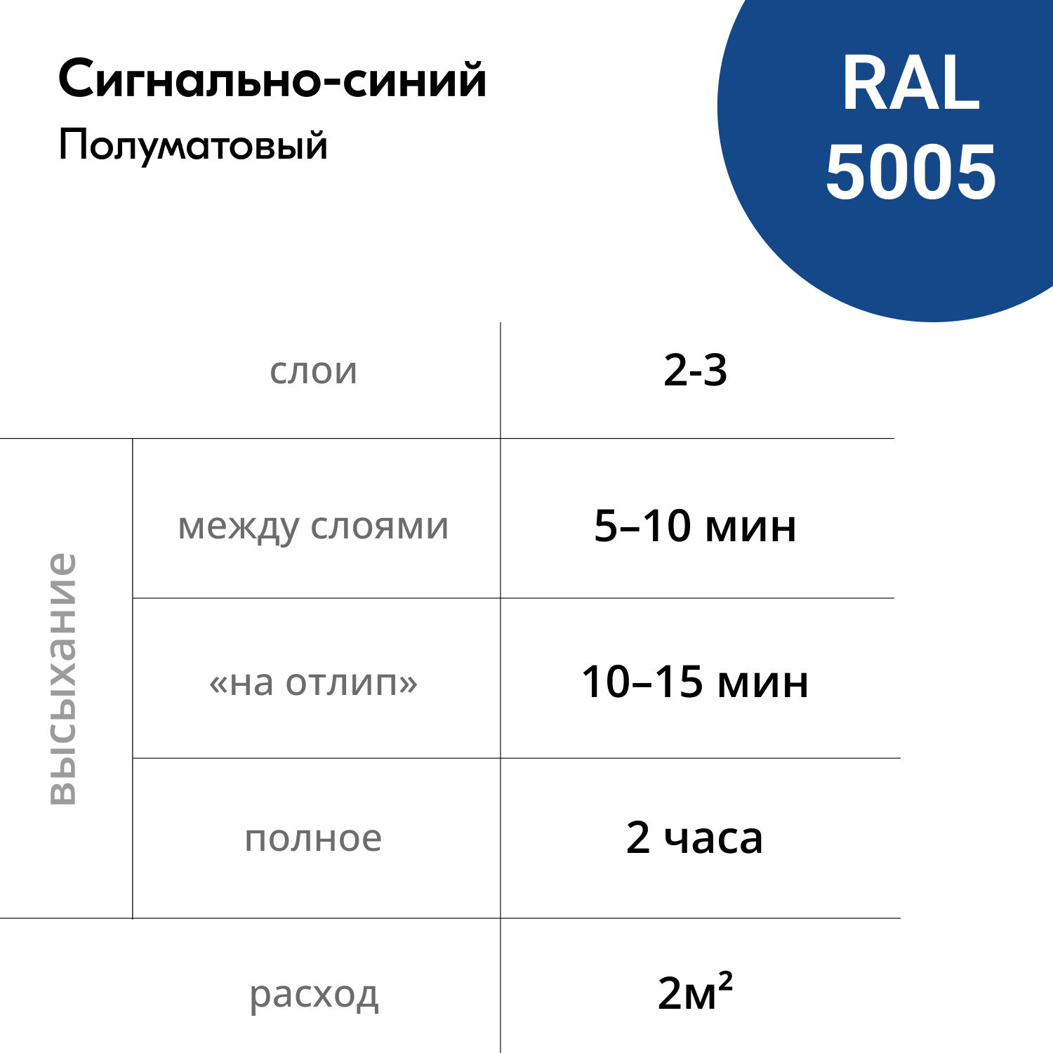 | Время высыхания | 2 часов |