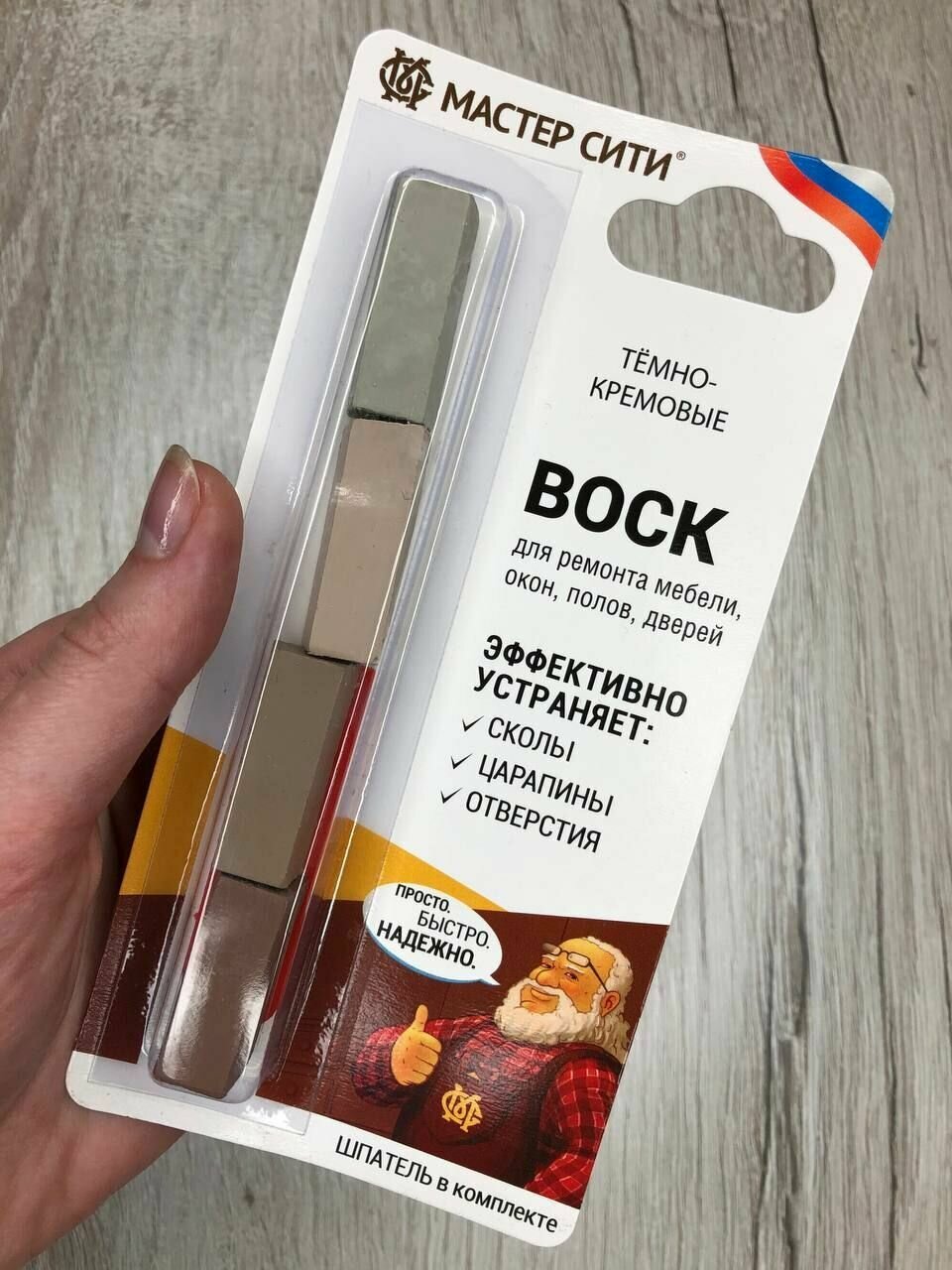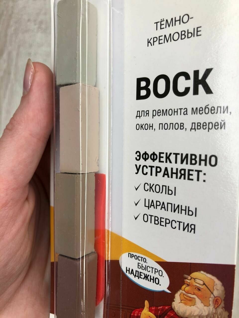 | Отзыв: | Удобно то, что цвета можно смешать и добиться нужного или похожего оттенка. Неплохо подошёл для тёмных наличников - сделал незаметнее царапины, следы от старого крепежа и снизил заметность нового. Подошёл и для шкафа и стенки - закрыл сколы, царапины и облезлости. Не идеально, но если не приглядываться, то вид вполне неплохой. Закажу второй набор такого воска более светлых коричневых тонов. Пригодится. |