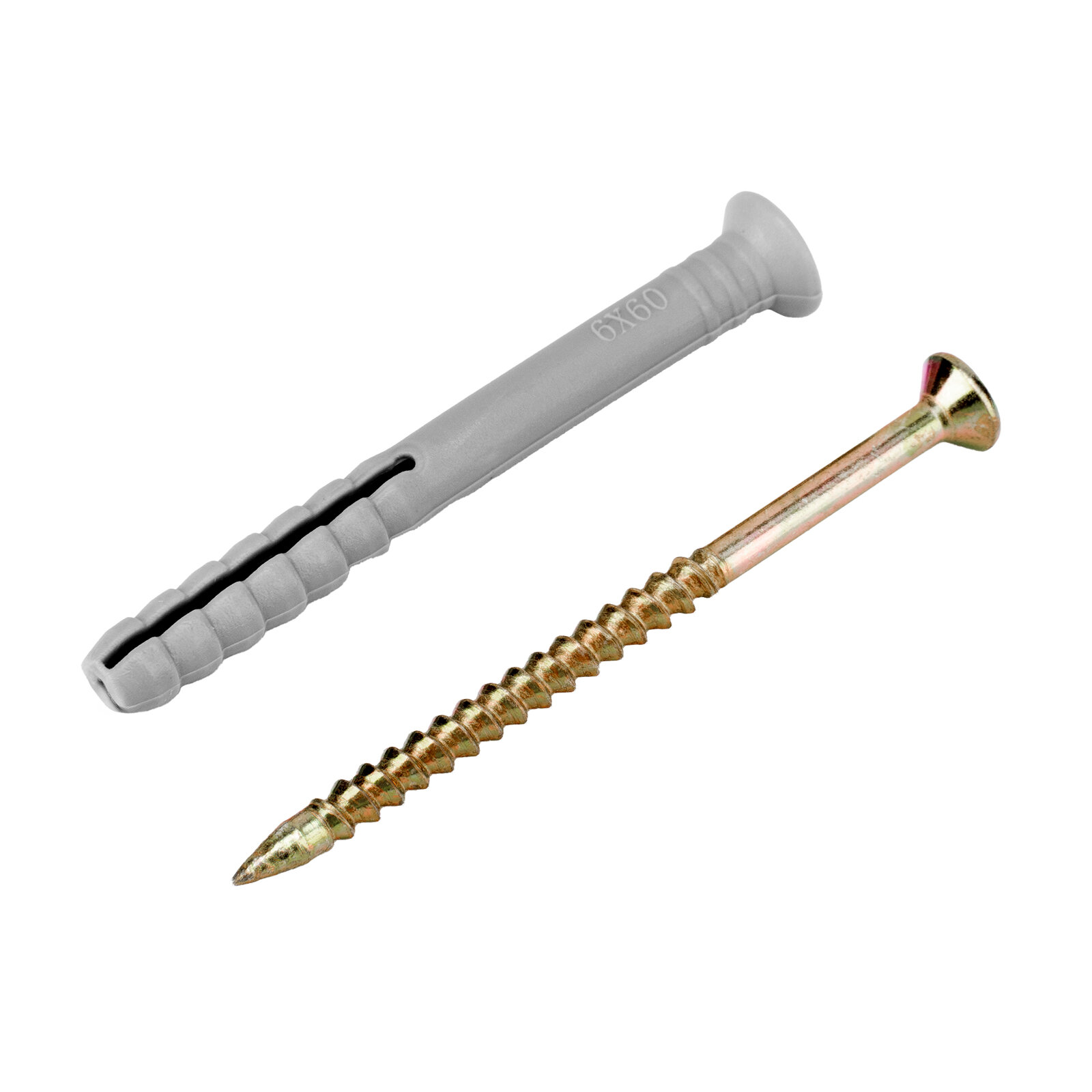 Дюбель-гвоздь полипропиленовый с потайным бортиком 6 х 60 мм, 200 шт.// Сибртех 42125