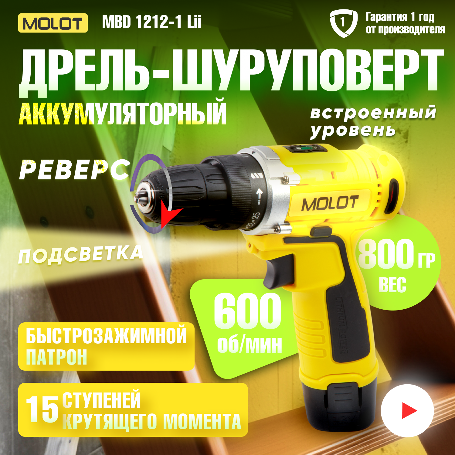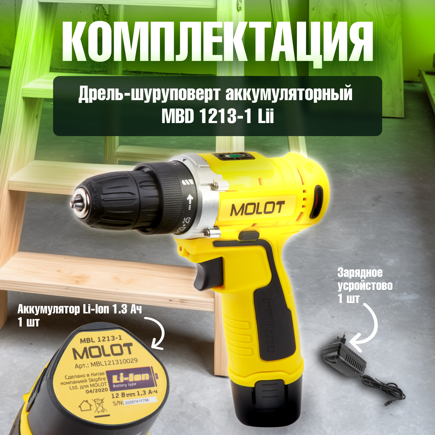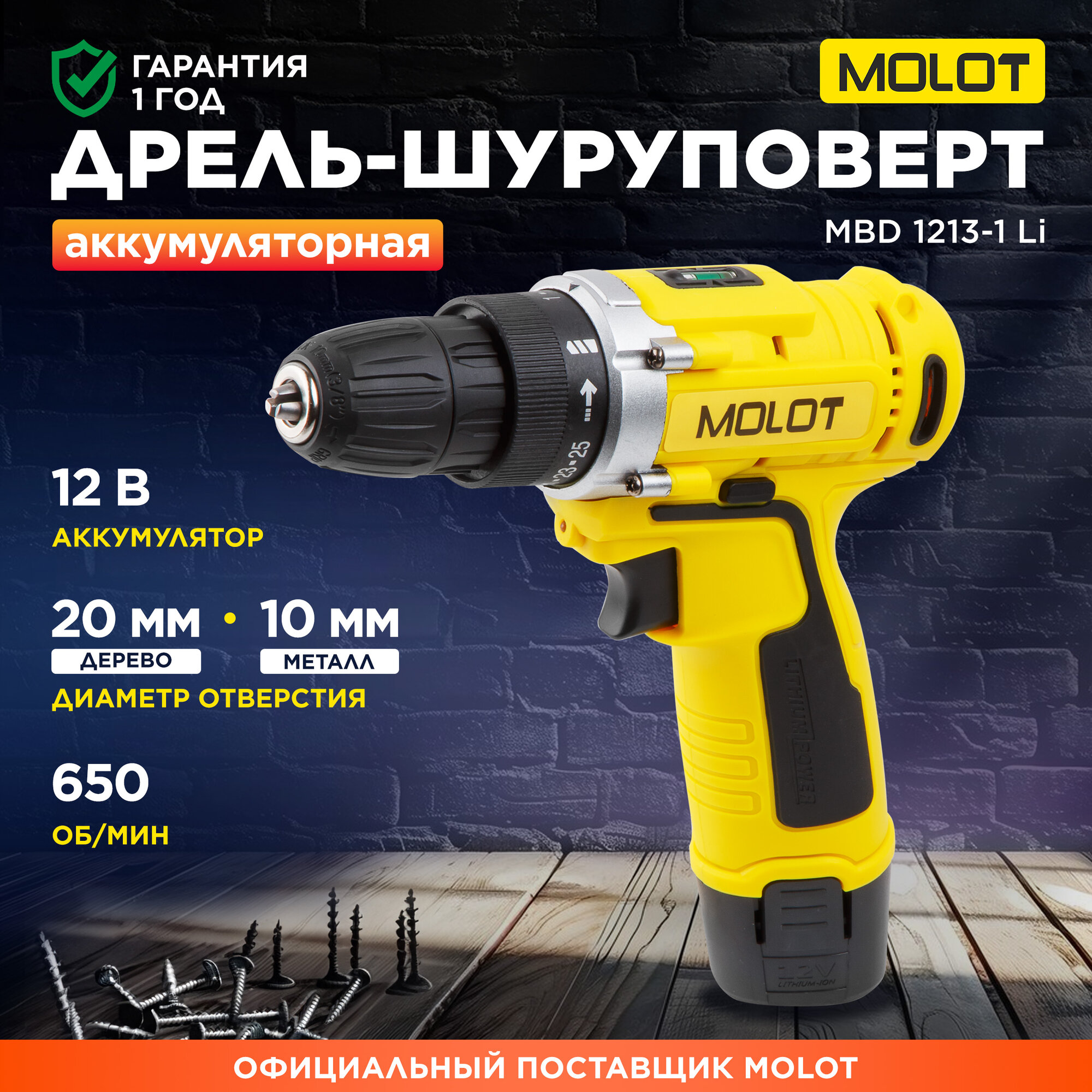 Дрель-шуруповерт Molot MBD 1213-1 Li (с 1-им АКБ)