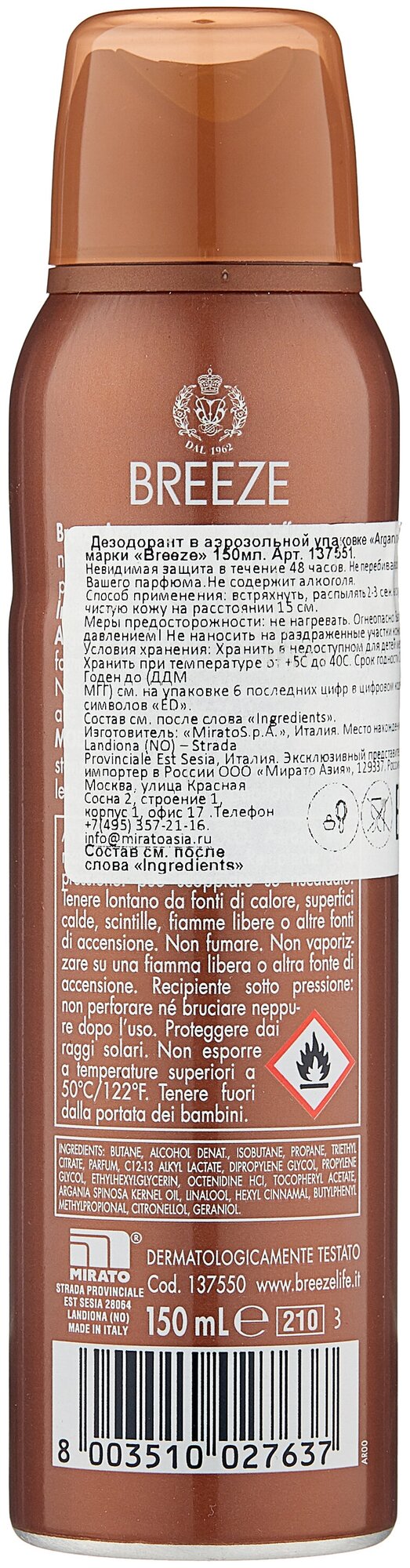 Breeze / Дезодорант Breeze Argan 150мл 1 шт интересное: