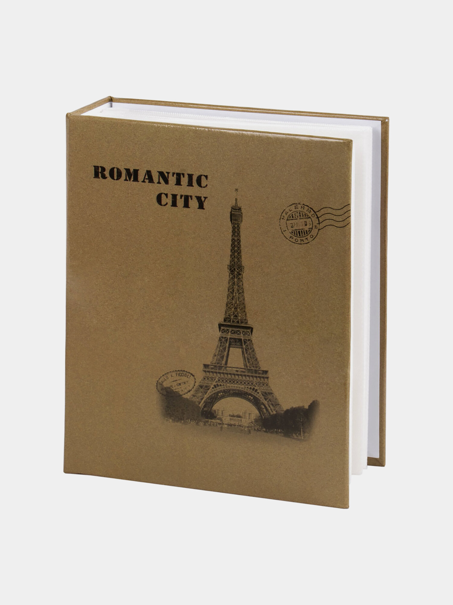 Фотоальбом семейный/свадебный/детский на 200 фотографий 10x15см "Париж", твердая обложка, листы с карманами, бежевый, Brauberg