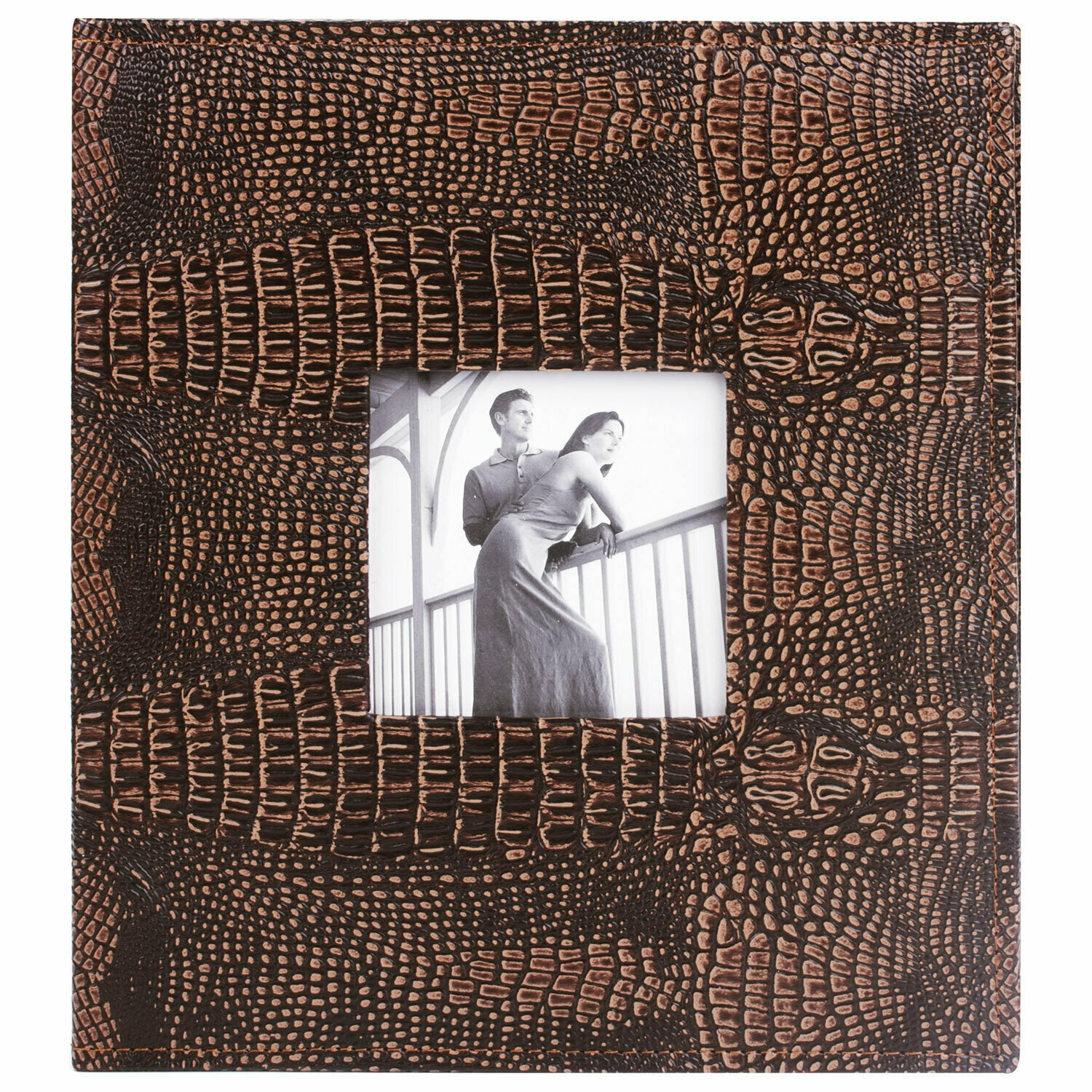 Фотоальбом BRAUBERG на 20 магнитных листов, 23х28 см, под кожу крокодила, темно-коричневый, 390493, 390493