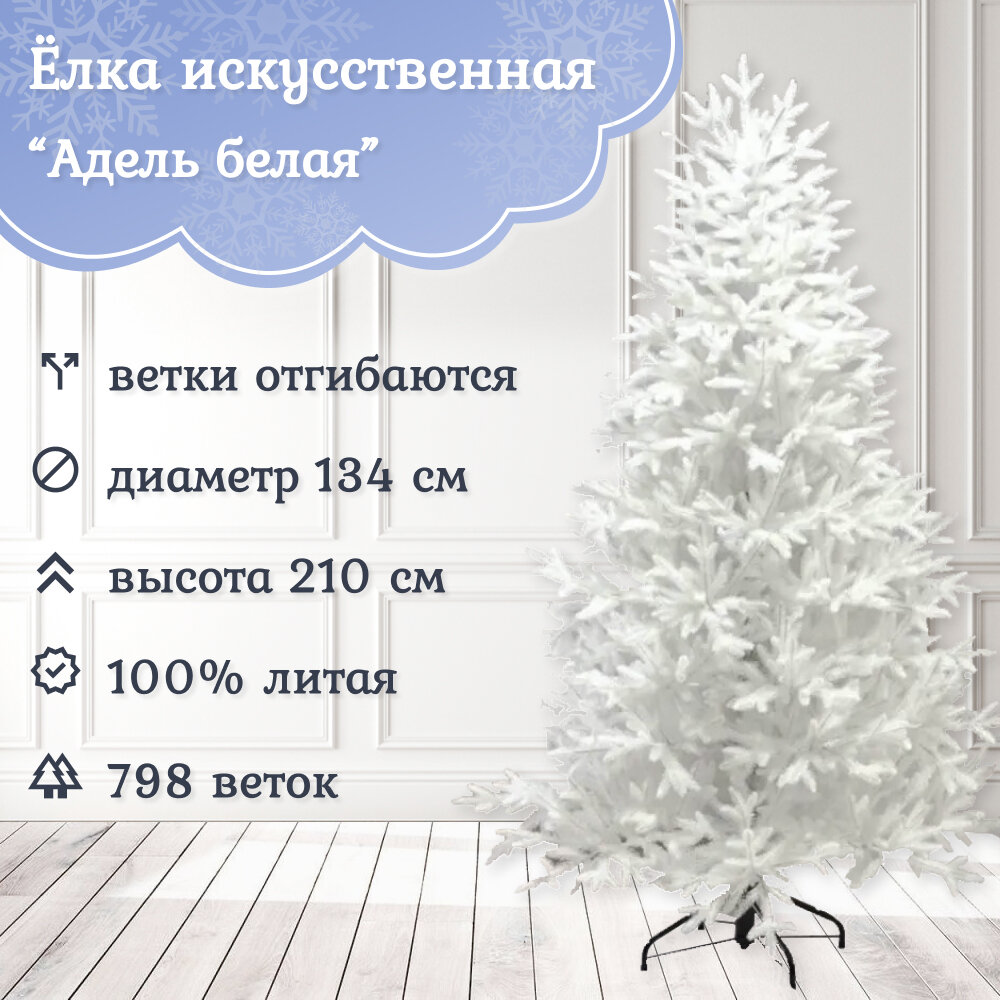 Елка искусственная новогодняя Литая 100% - Адель белая высота 210 см, напольная искусственная елка, ель искусственная 210