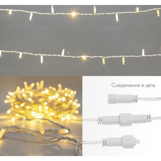 СохранитьГирлянда электрогирлянда новогодняя светодиодная уличная 100 LED Neon-Night Нить 10м без шнура питания, теплое белое свечение интересное: