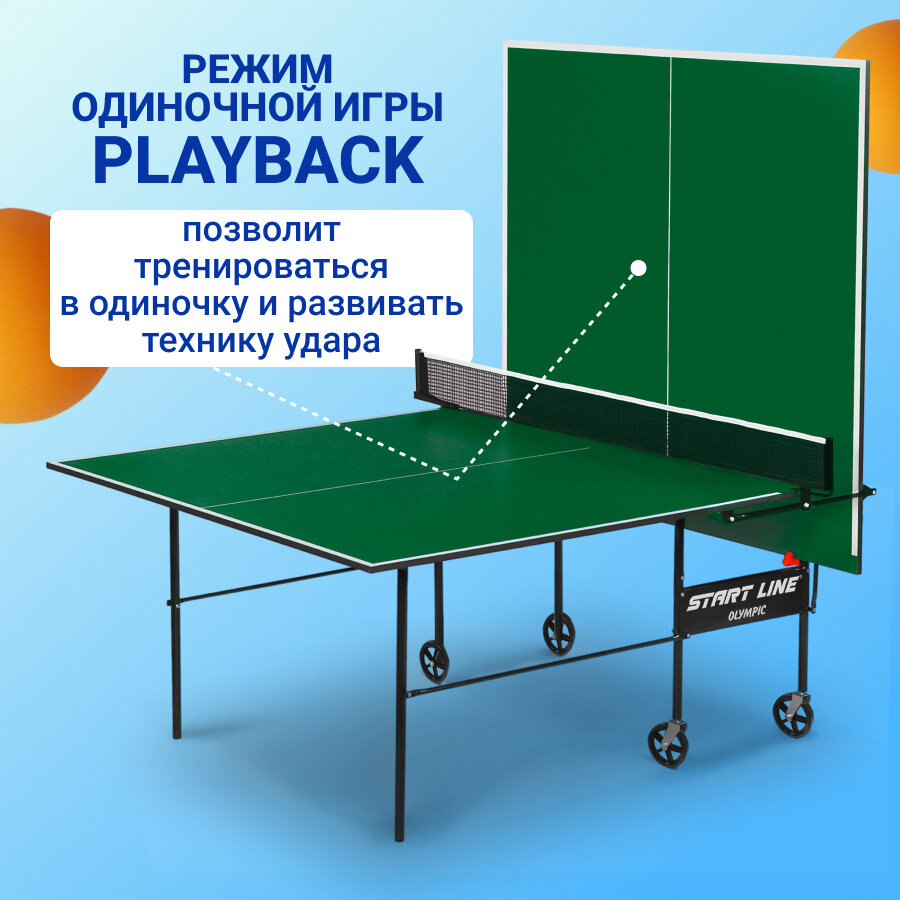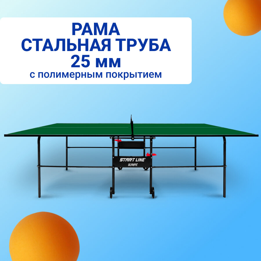 Теннисный стол Start Line Olympic для помещений (встроенная сетка, цвет зеленый)