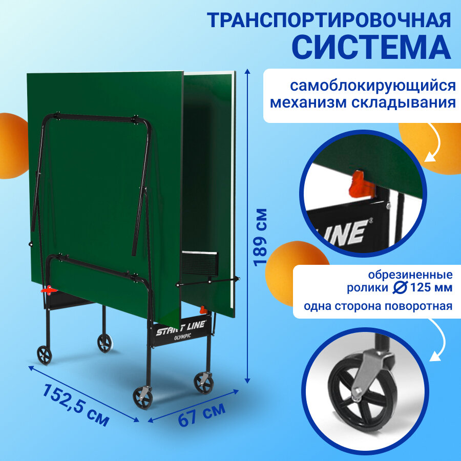 Теннисный стол Start Line Olympic BLUE, любительский, для помещений, складной, с сеткой