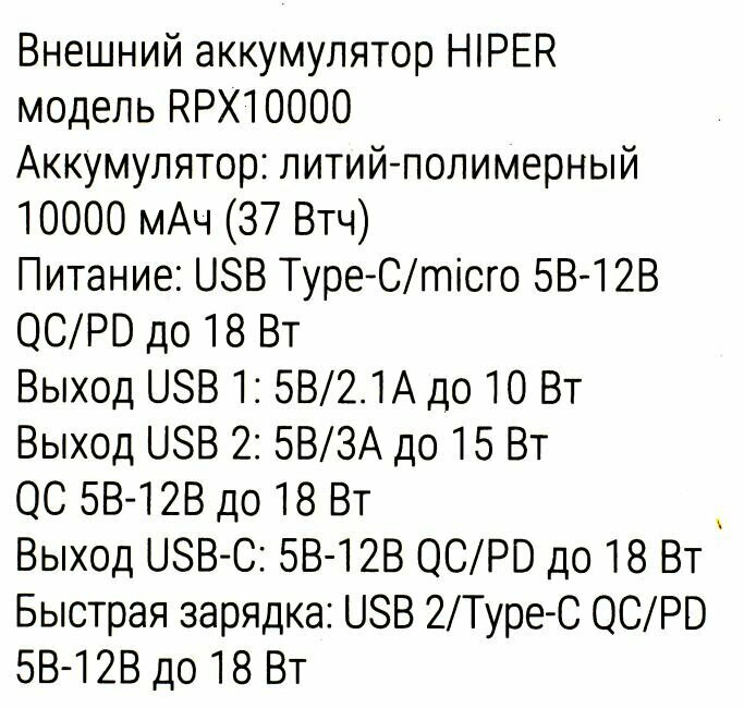 СохранитьВнешний аккумулятор Hiper RPX10000 черный интересное: