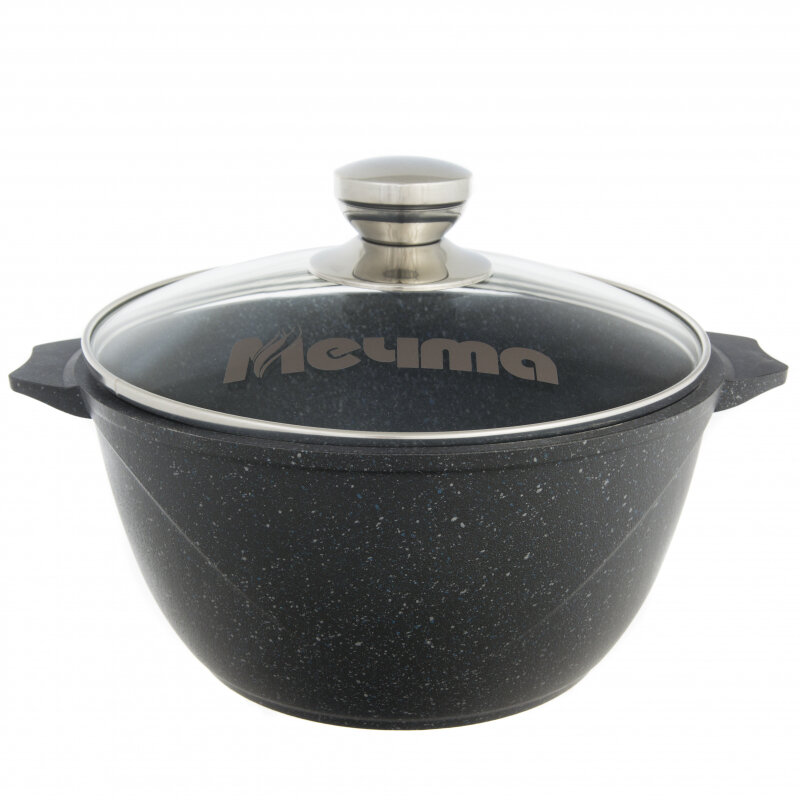 Кастрюля Мечта Гранит Black литая с антипригарным покрытием, со стеклянной крышкой, 6л, гранит black