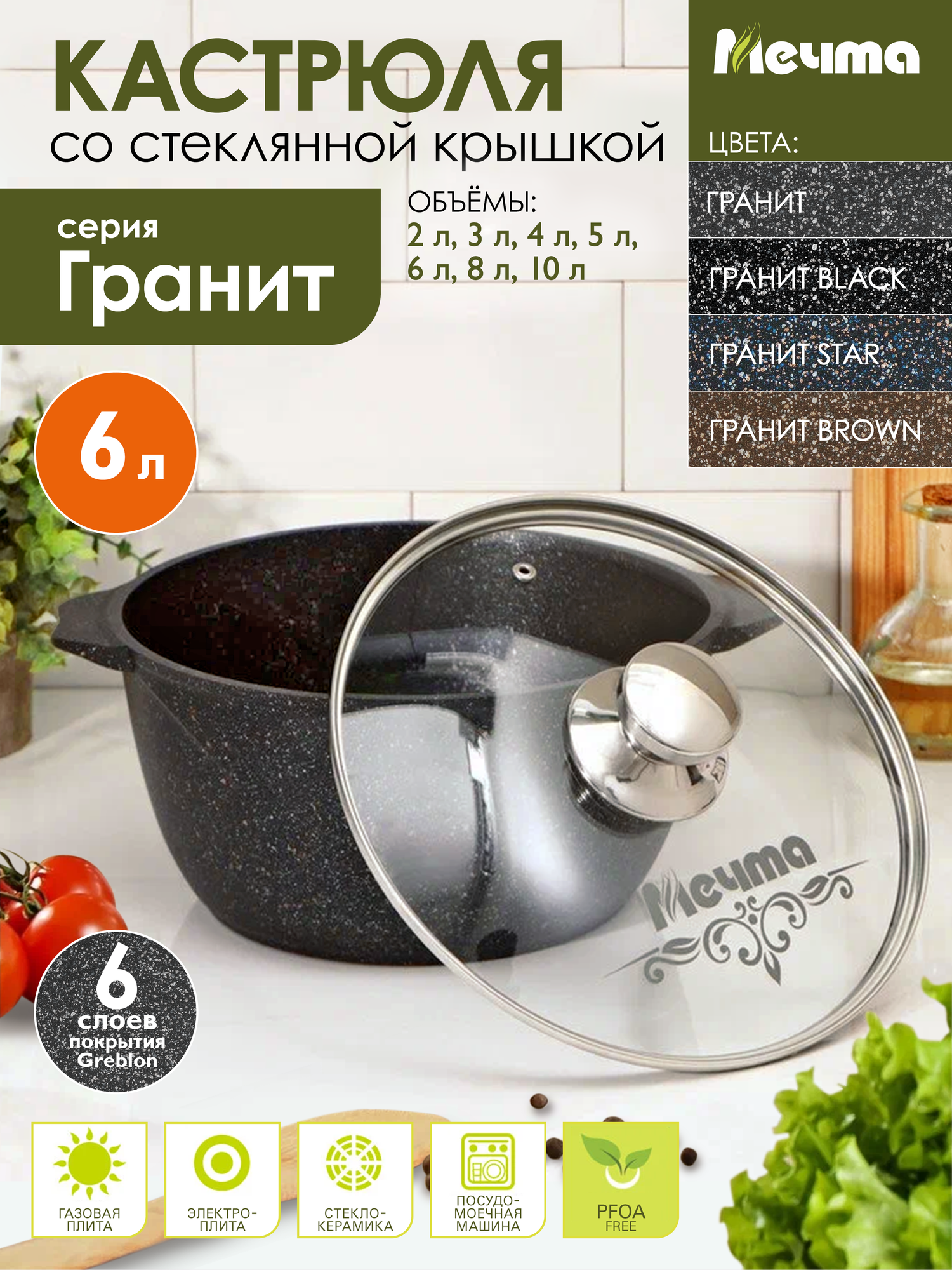 Мечта Кастрюля 6л АП Гранит black 46802 черная, антипригарное покрытие