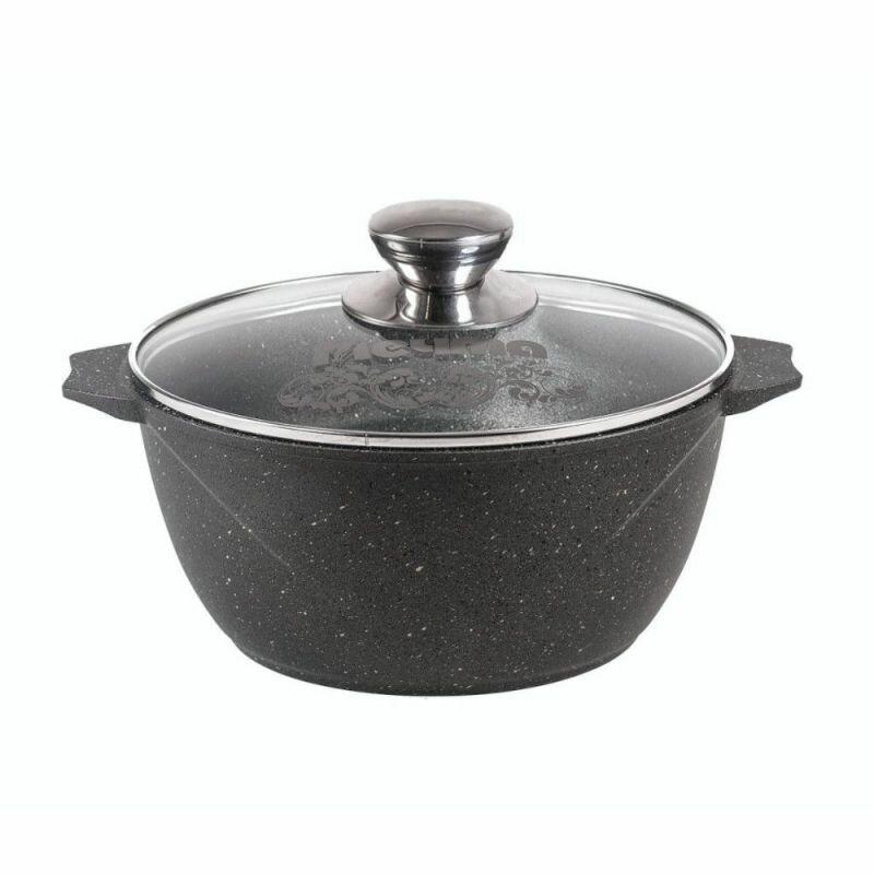 Кастрюля Мечта Гранит Black литая с антипригарным покрытием, со стеклянной крышкой, 6л, гранит black