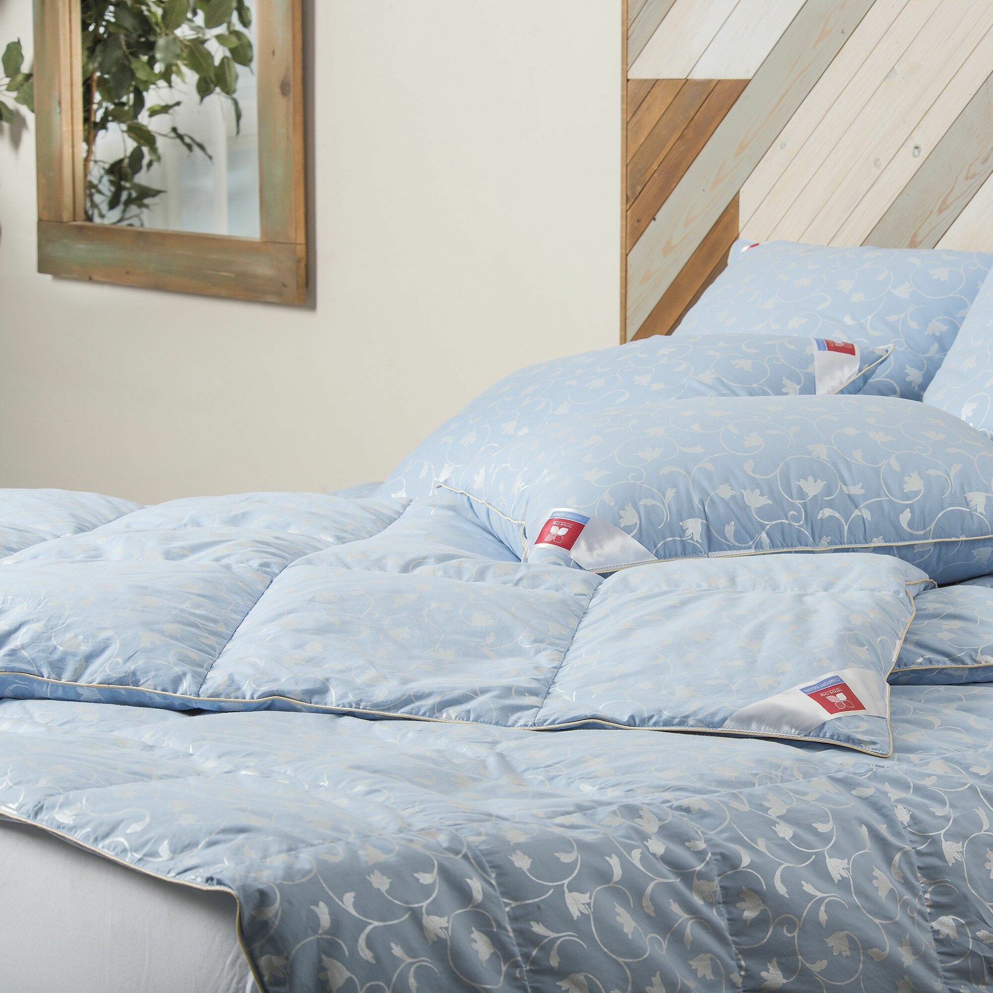 Одеяло камелия голубая пух/тик/хлопок тёплое 172X205 см
