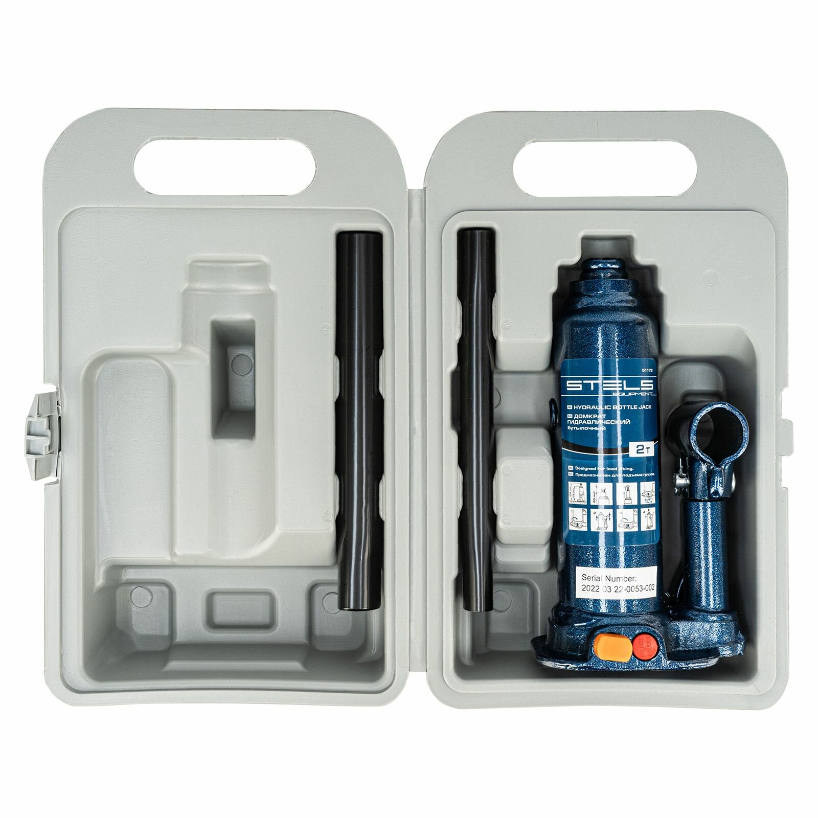 Домкрат гидравлический бутылочный, 2 т, h подъема 178-338 мм, в пластиковом кейсе Stels, арт. 51172