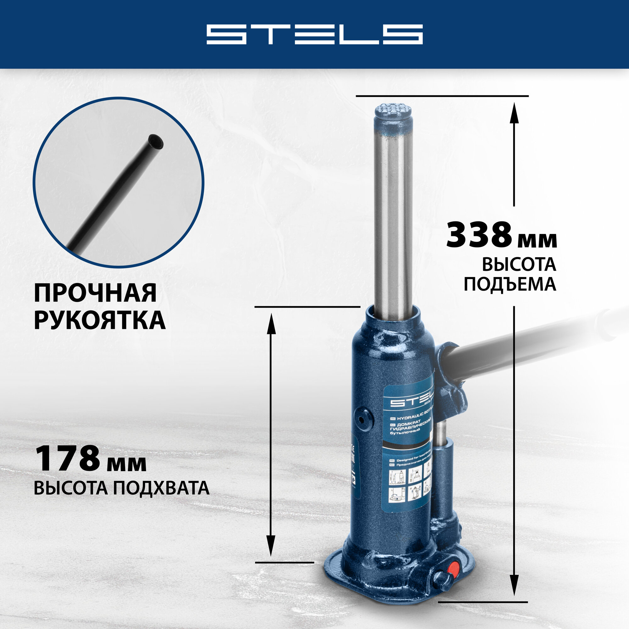 СохранитьДомкрат бутылочный 2 т высота подъема 178-338 мм.. Stels интересное: