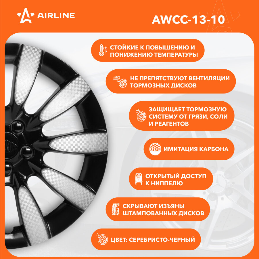 Колпаки Колесные Airline 13" "Супер Астра +", Серебристо-Черный, Карбон, Компл. AIRLINE арт. AWCC1320