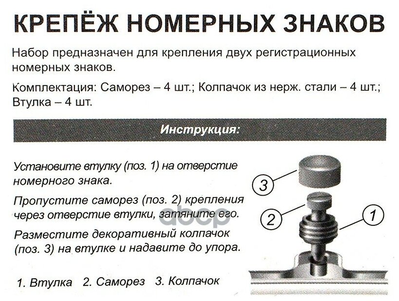 СохранитьКрепеж номерного знака (саморез) с заглушкой-колпачком хром (к-т 4 шт.) интересное: