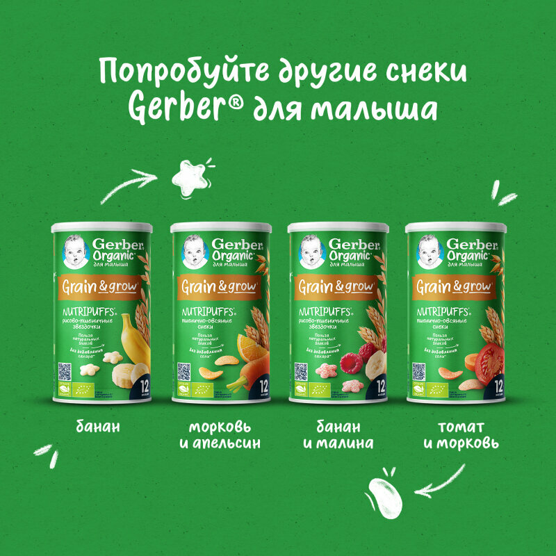 Снеки Gerber Органические звездочки-банан-малина 35г с 12 мес 5шт.