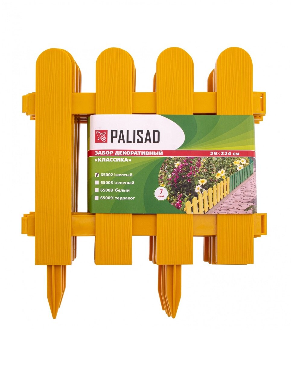 Забор декоративный Palisad Классика, 29 x 224 см, 7 секций, желтый