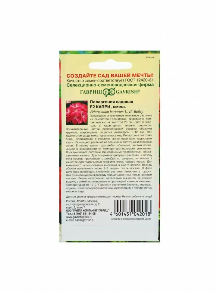 Гавриш, Пеларгония Капри F2 зональная 4 семени