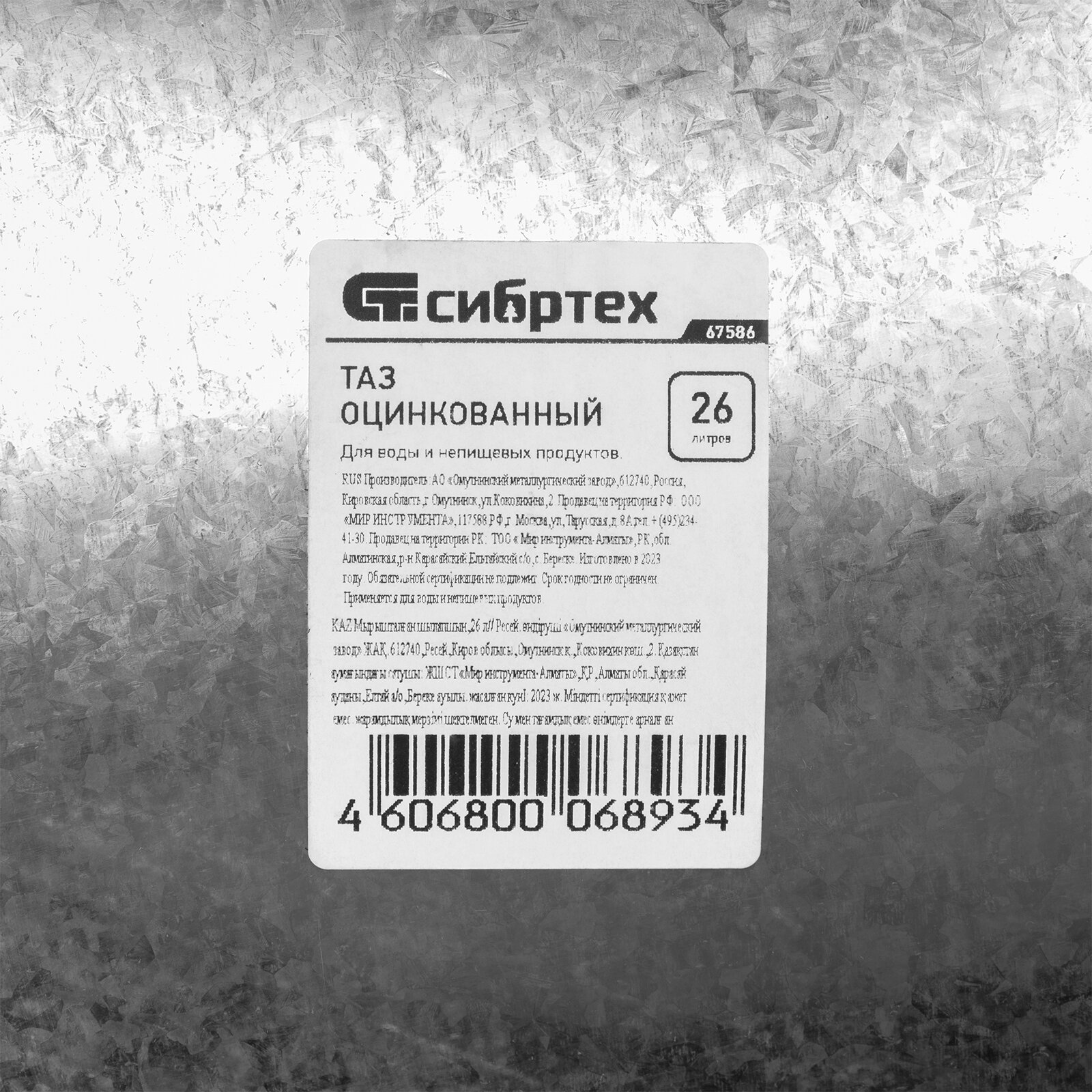 Таз оцинкованный 26 л, Россия// Сибртех 67586 .