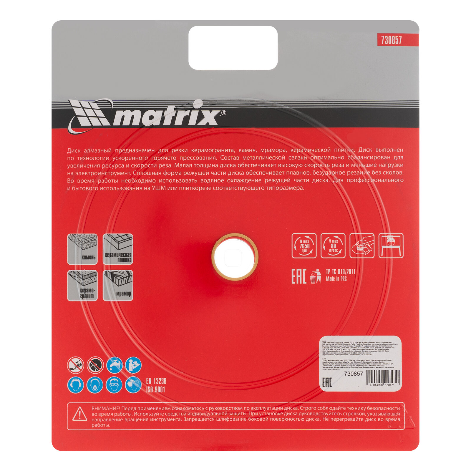 Купить Диск алмазный сплошной Matrix тонкий, 200 х 25, 4 мм, мокрое резание 730857