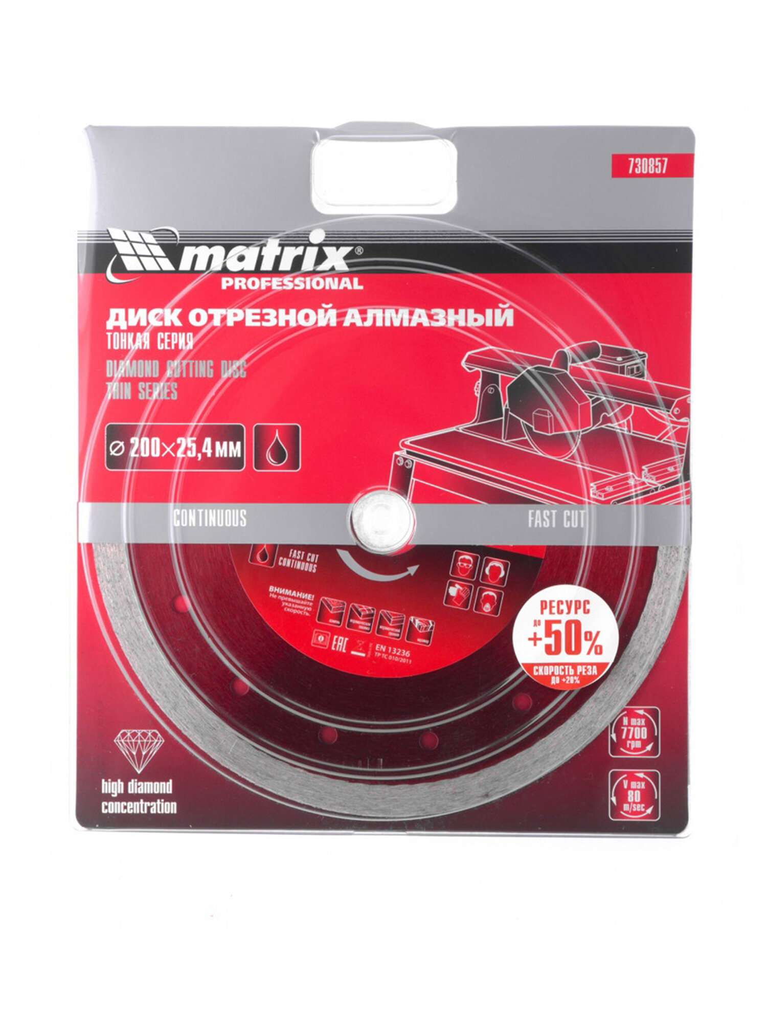 MATRIX Диск алмазный сплошной, тонкий, 200 х 25,4 мм, мокрое резание Matrix, ( 730857 )