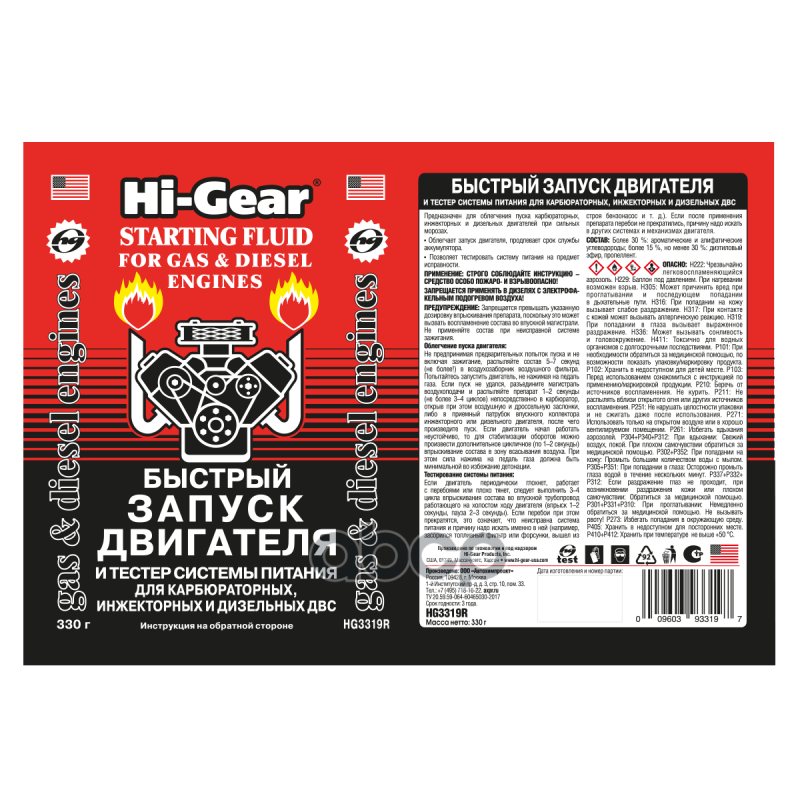 HI-GEAR hg3319 быстрый запуск двигателя для карбюраторных инжекторных и дизельных двс и