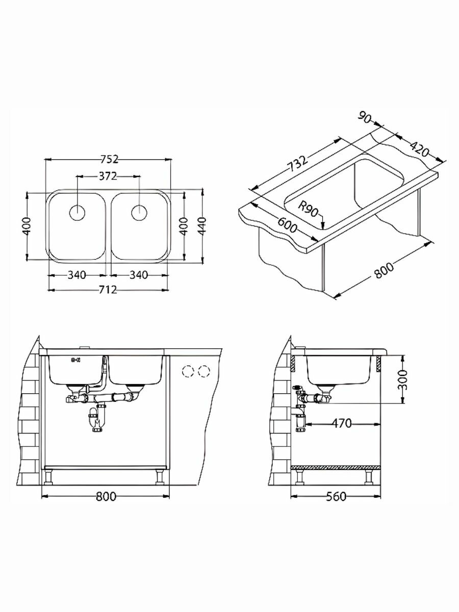 Мойка DUO 30 SAT-90 752X440 в комплекте с сифоном