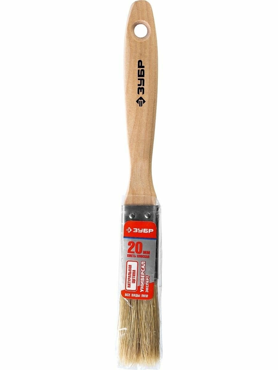 ЗУБР Кисть плоская ЗУБР "универсал-эксперт", светлая натуральная щетина, деревянная ручка, 3/4"/20мм