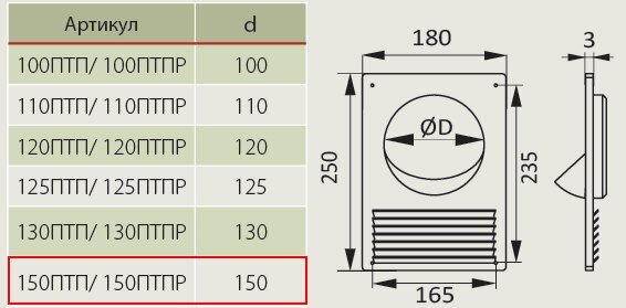 Площадка торцевая птпр фланец D150 решетка 180х250 пластик ERA