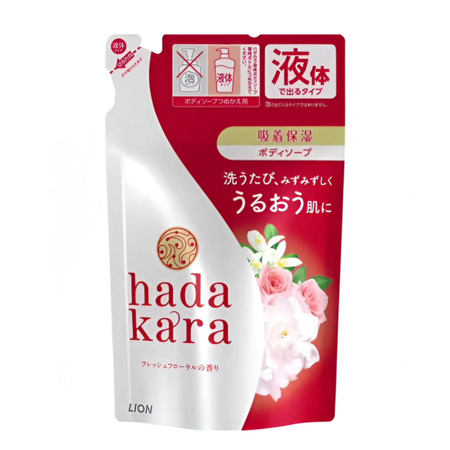 LION Hadakara Жидкое мыло для тела, аромат цветов, увлажняющее, сменная упаковка 360 мл