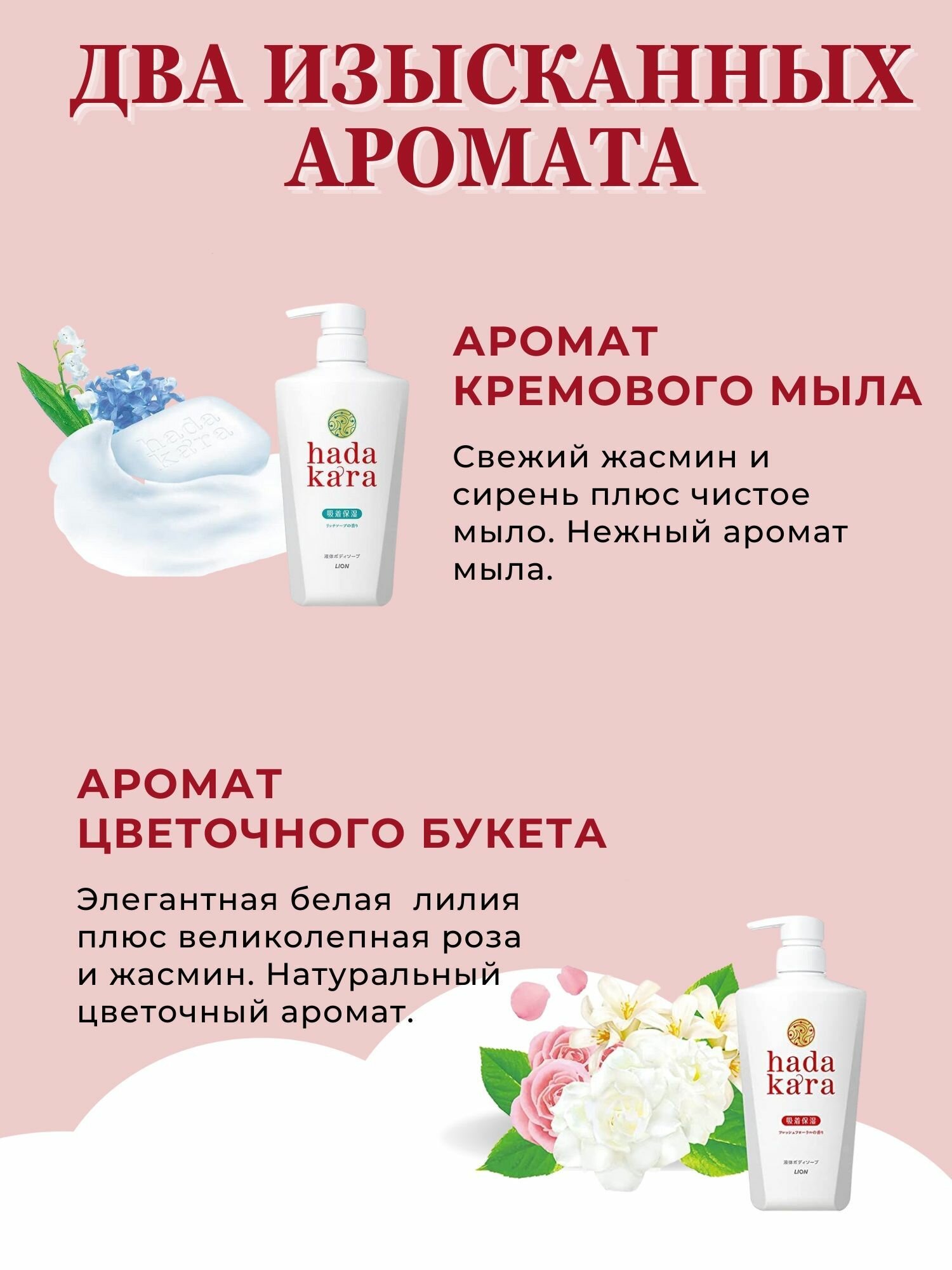 LION Мыло для тела Hadakara с цветочным ароматом, 500 мл.