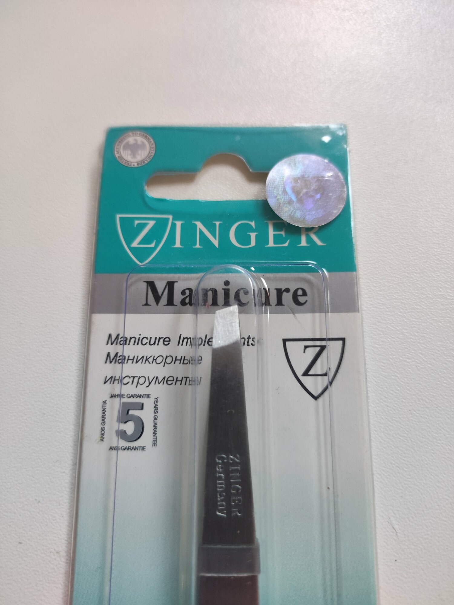 ZINGER Пинцет гладкий скошенный для бровей 12904, серебристый интересное: