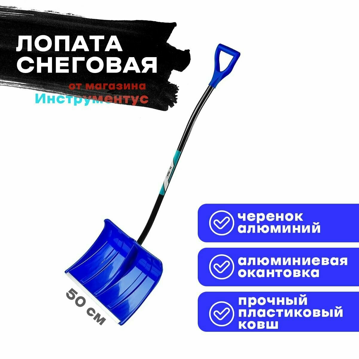 СИБИН ЛПА-500, ширина 500 мм, пластиковая, с алюминиевой планкой, эргономичный алюминиевый черенок, V-ручка, снеговая лопата (421847)