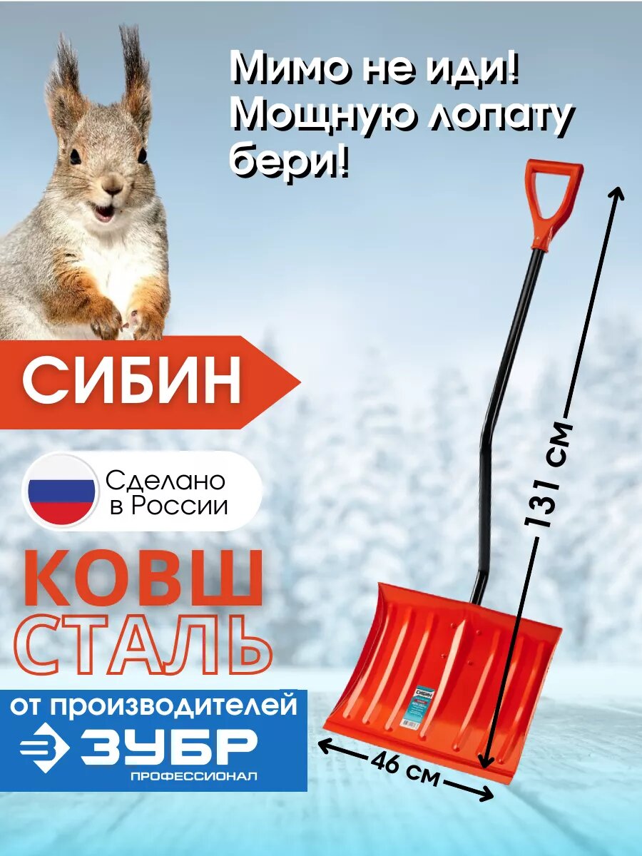 Сибин ЛС-460 лопата снеговая стальная, с эргономичным стальным черенком, 460мм .