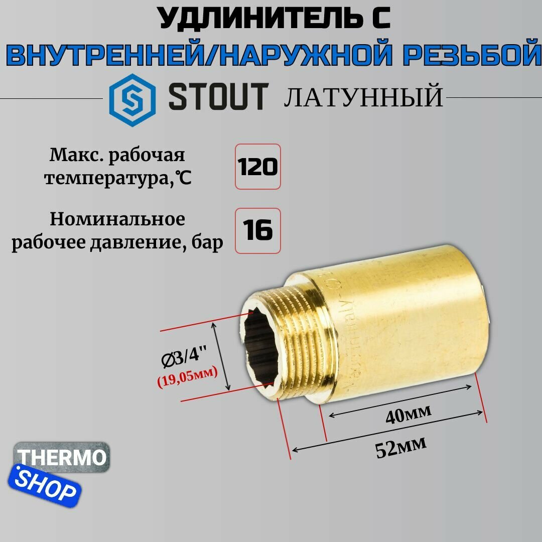 Удлинитель латунный 3/4" НР-ВР 40 мм, Stout SFT-0001-003440