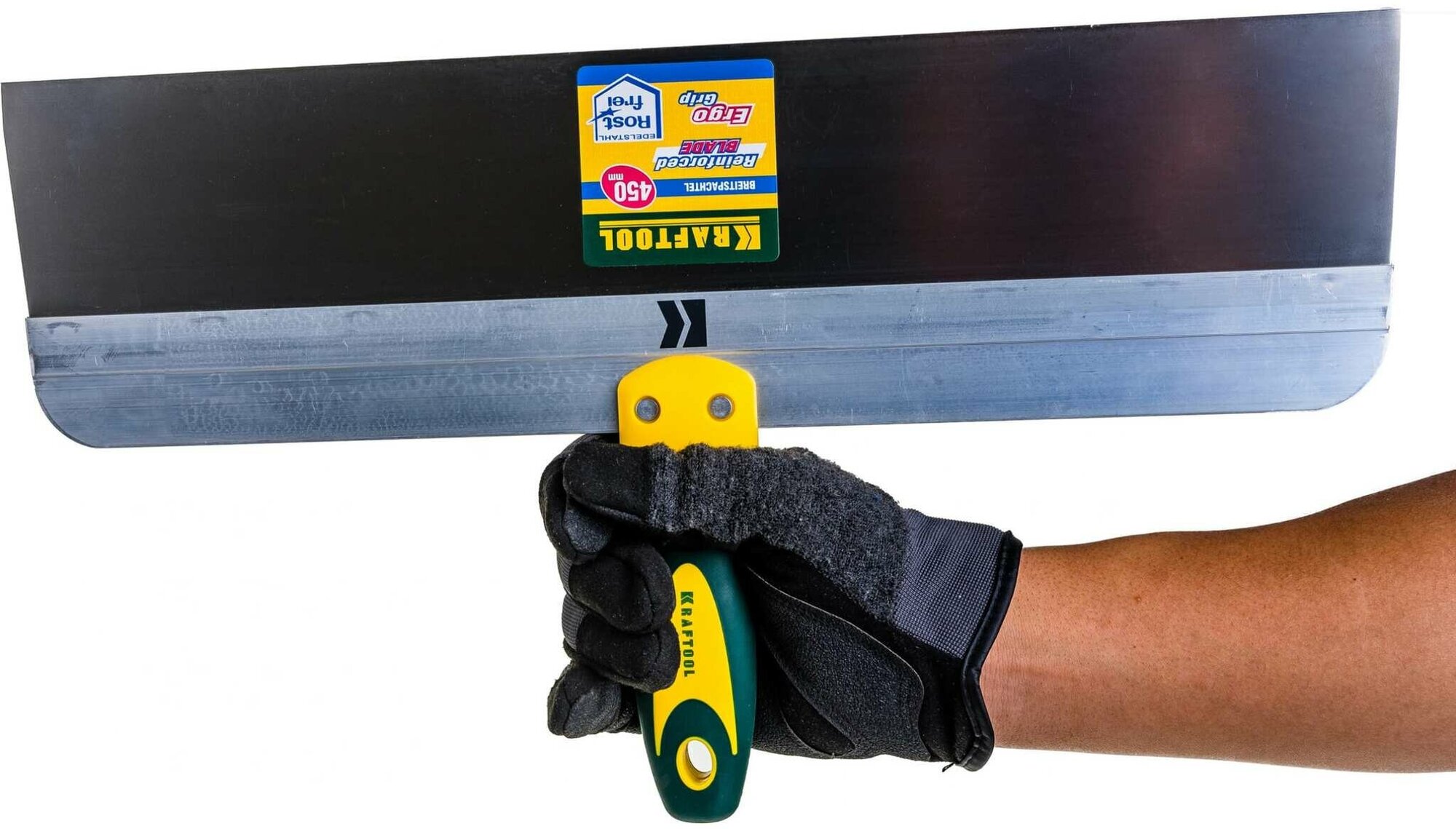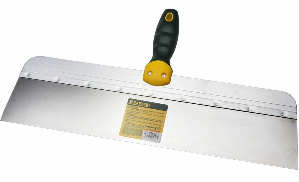 Шпатель фасадный 450мм KRAFTOOL широкое нержавеющее полотно алюминиевая направляющая двухкомпонентная ручка