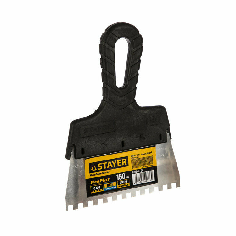 STAYER PROFlat, 150 мм, зуб 6 х 6 мм, пластиковая ручка, зубчатый, нержавеющий, фасадный шпатель, Professional (1009-15-06)